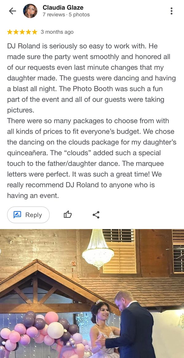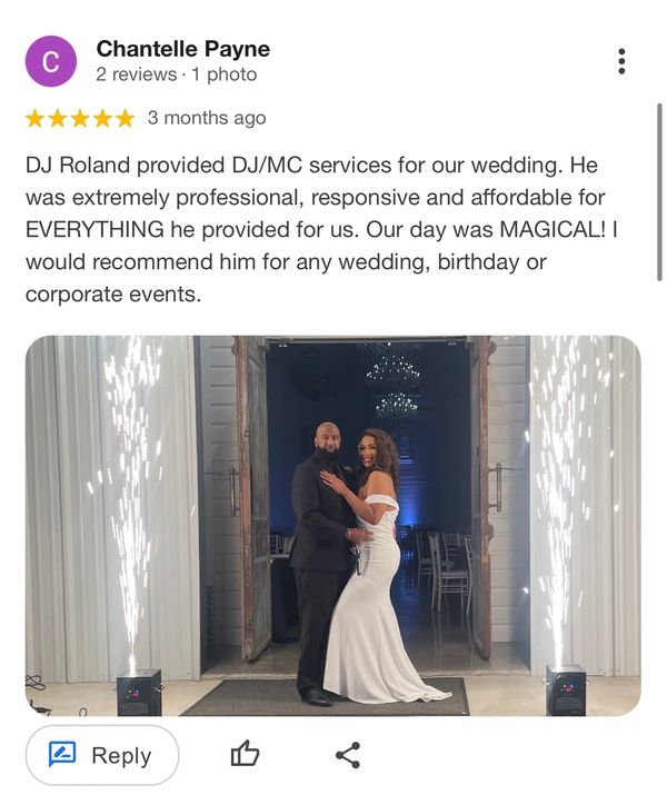 A Black Tie Affair DJ Co. Is owned and operated by DJ Roland The music man with over 20 years wedding DJ experience. And Houston top 10 Wedding DJs. We Specialize in Weddings and events in Houston and surrounding areas. As a group of Seasoned professionals, our team brings unparalleled level of talent to Houston Weddings and Years of experience have led to our esteemed reputation in today's wedding Industry, and we are proud to have been involved in so many incredible events. Our specialty includes DJ & Master of ceremonies receptions, Photo booths , Lighted Monogram ,We have a variety of packages available to choose from. We construct a personalized experience, unique to you as a couple we work hard to make your wedding day come true. With our huge collection of music with all types of genders. DJ Roland will have your guest dancing to your favorite music form decades passed and todays hottest hits. Since no two people are exactly the same then no two weddings are the same We ensure that traditions and toast are understood by everyone your guest can enjoy the Father daughter dance,Mother son dance , Garter and Bouquet toss . He Has preformed hundreds of weddings and is one of the most sought after master of ceremonies wedding DJs . we have state-of-the-art-sound-system with club laser light show . DJ Roland helps coordinate your reception with his unmatched style of crowd motivation he will create a truly unique and unforgettable wedding reception celebration for you and your guest . We offer other services to help you make your wedding a success. Our Photo Booths are a real crowd pleaser our booths are open air with a variety of backdrops. tons of awesome Props with unlimited custom prints and you will get all digital images on a cd / We offer Projection Gobos to make your event extraordinary / Up Lights make your venue elegant / Projector and screen for your slide show . weddings are what we specialize in but we do all types of events Every gig is different i have mastered the art of how to read a crowds that only comes with years of experience .